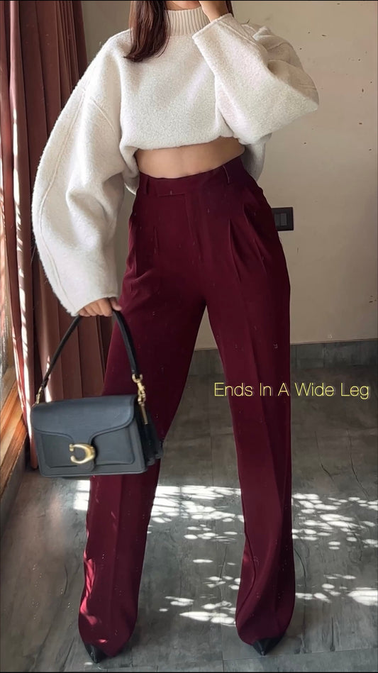 Limited Holiday Edition- Pleated Trousers -Cherry Red