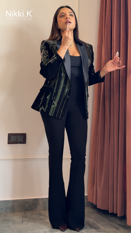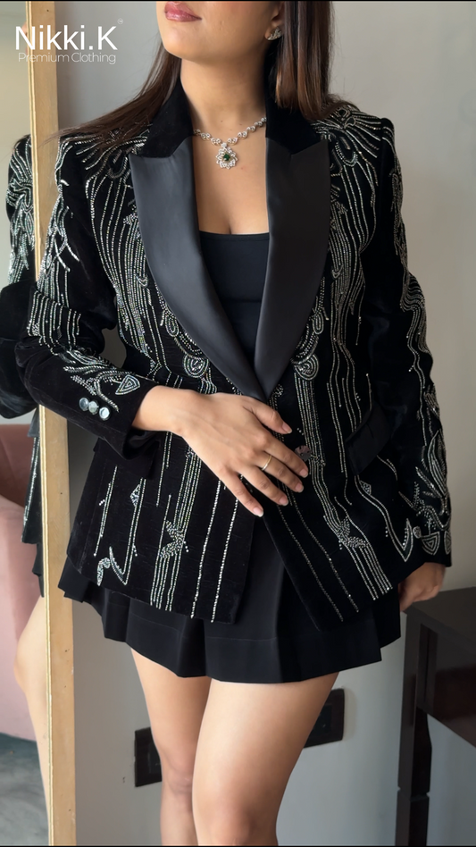 Beaded Embroidered Blazer + Ultimate Black Skort Set