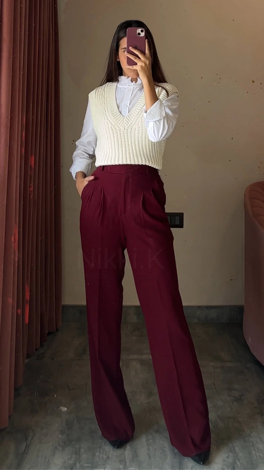Cherry Red Waistcoat + Pleated Trousers- Limited Edition