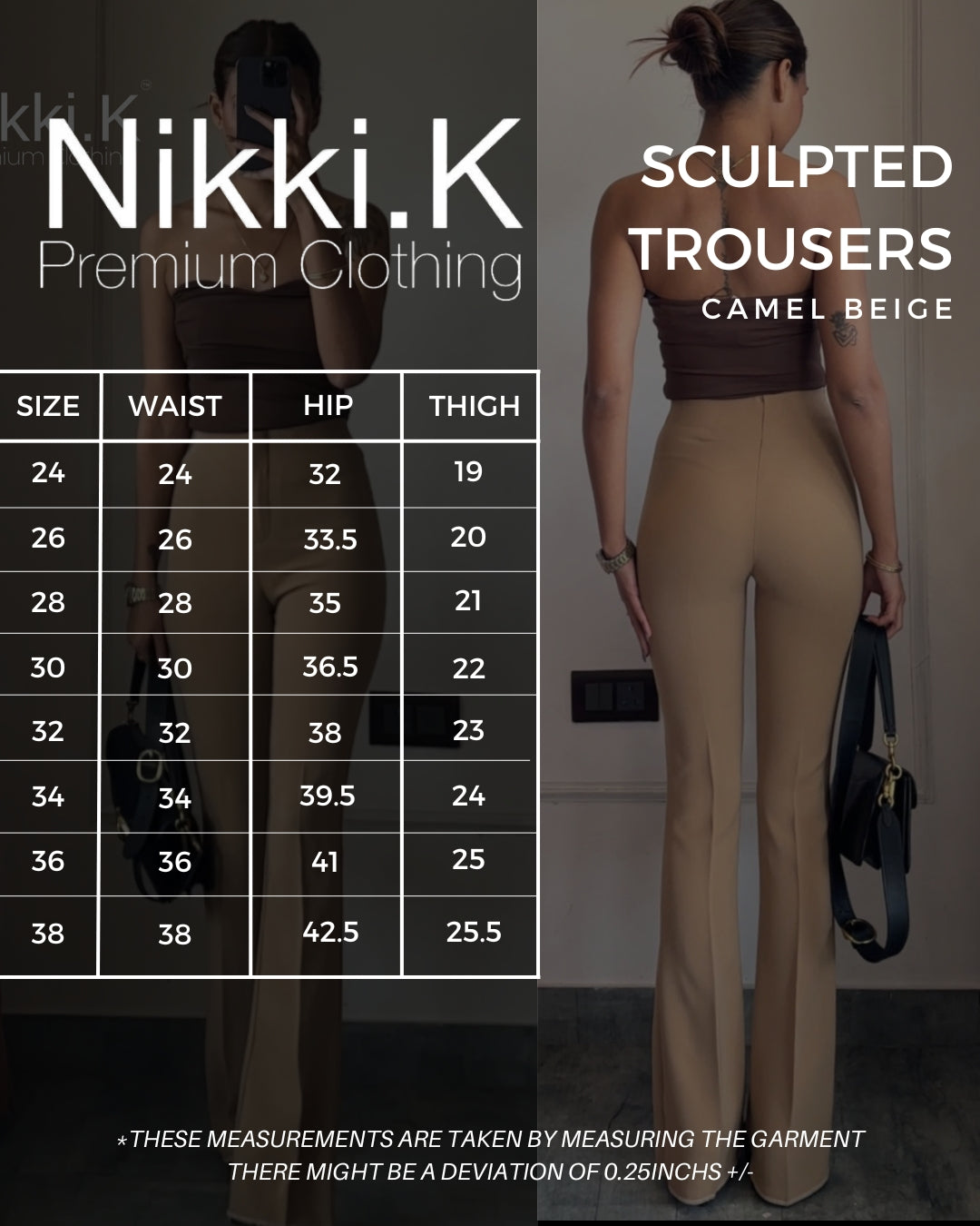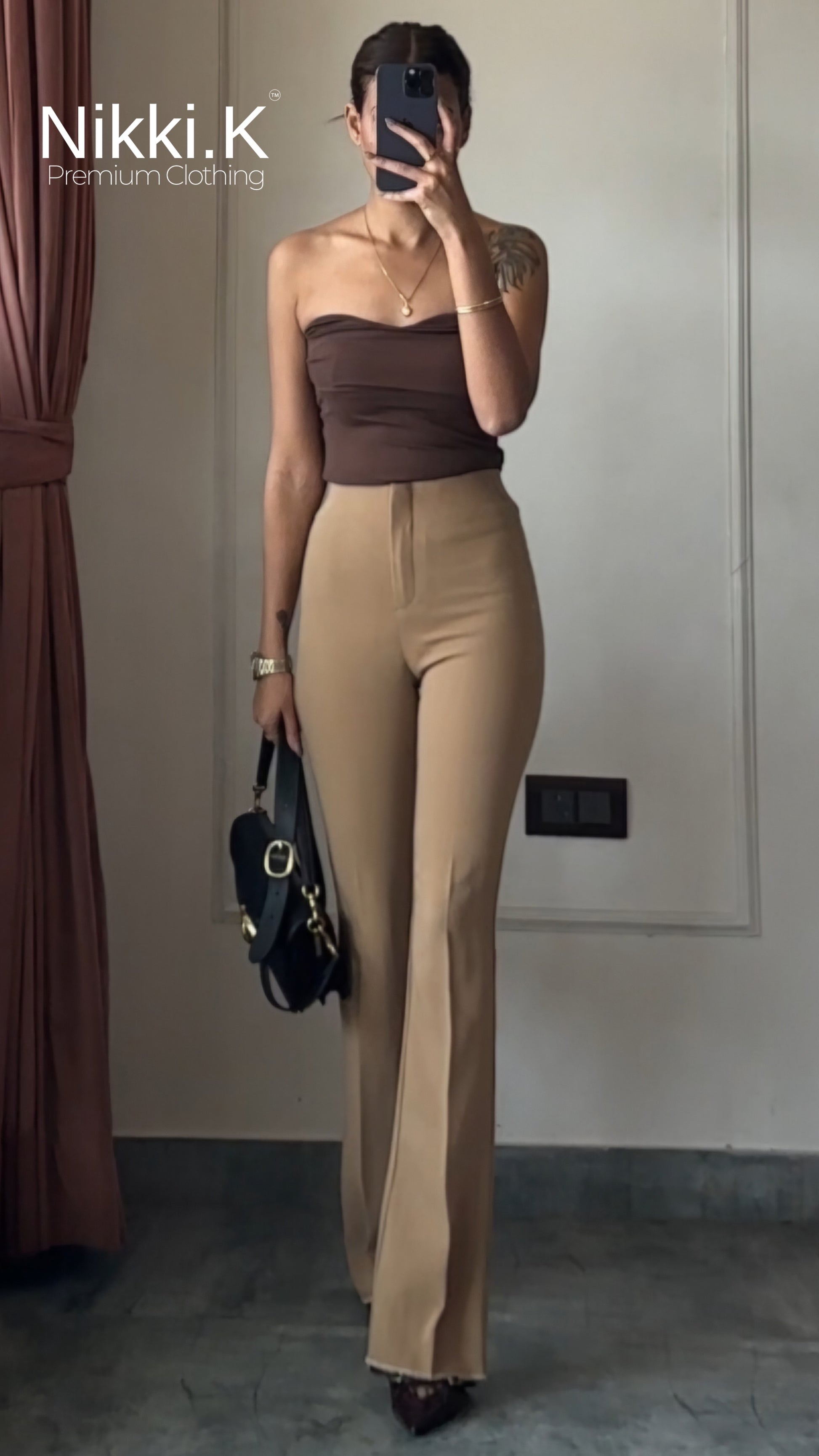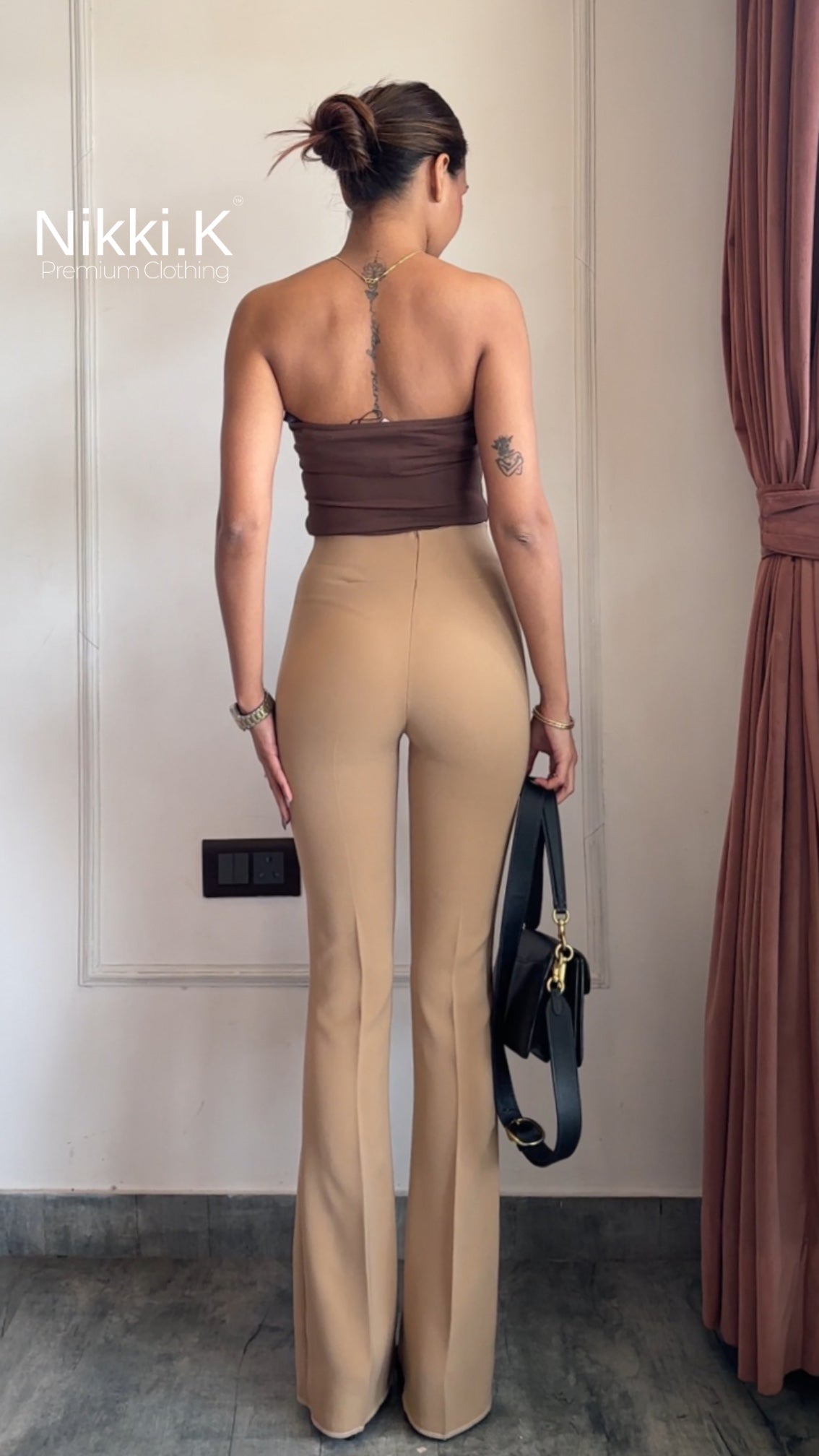 Nikki.K Sculpted High Waist Flared trousers (W/O Pocket)- Camel Beige(NEW) - 5 days preorder